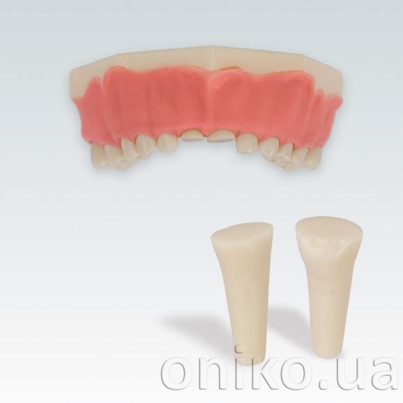 | AK-6/2 M | dětský zubní model horní a dolní čelisti s 20 mléčnými zuby fixovanými na tření jsou blízko sebe. Zuby jsou vyrobeny z duroplastu a vyměnitelná růžová guma je vyrobena z elastomeru |