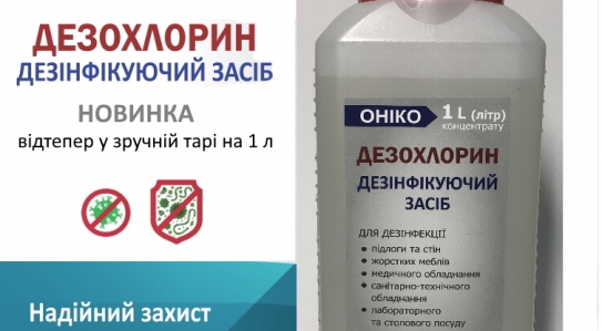 НОВИНКА // Дезінфікуючий засіб ОНІКО «ДЕЗОХЛОРИН» в зручній тарі 1 л
